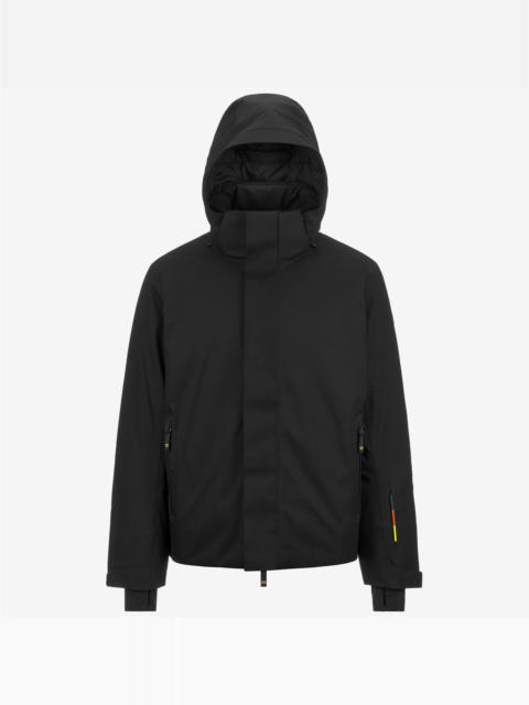 Royal Blue Men's Waterproof Ski Jacket with Insulation and Pockets Malamot is a high-performance men's jacket designed for winter sports. It features a contemporary, technical construction, accessorized with several functional pockets, a ski pass pocket on the sleeve, and inner cuff gaiters providing a snug fit. The two-layer padded, waterproof and windproof twill fabric is designed to withstand the pressure of a 15-meter high water column to keep you dry even at peak humidity. This advanced technology ensures that the jacket offers optimal protection during outdoor sports activities while maintaining excellent breathability. PrimaLoft Eco recycled synthetic padding and quilted nylon lining provide a high warmth grade and excellent thermal insulation due to their ability to decrease body heat loss and resist the cold outside, ensuring quick drying even in extremely cold conditions. - Waterproof, 15000 mm water-repellent, windproof and 30000 g/m2 breathable double-layer twill - Synthetic padding made from PrimaLoft Eco, a highly insulating fiber obtained from recycled polyester - Quilted nylon lining - Ultra-warm - Heat-taped seams - Adjustable and detachable peaked hood with drawstring and stoppers - Adjustable neck with drawstring and stoppers - Supportive heat-taped padding on the shoulders - Underarm zip openings for ventilation - Waterproof zip and flap closure - Windproof flap - Elasticated inner cuffs and external adjusters - Welt pockets - Skipass pocket on the sleeve - Detachable inner waist gaiter - Inner mesh pockets - Inner zipped pocket with transparent section - Regular fit - Black silicone logo patch Features Description: Jackets, Mid Gender: Man Season: Fall, Winter Composition External: 100% Polyester Lining: 100% Nylon Padding: 100% Recycled Polyester Style: K4121SW - Color: 063