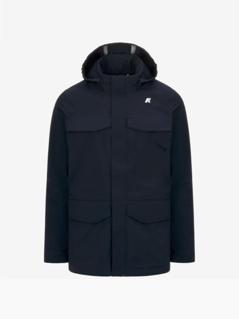 Depth Blue Men's Warm Mid Jacket with 3-Layer Waterproof Fabric La giacca media da uomo Manphy ha linea regolare e un aspetto versatile, facile da abbinare ai jeans o al chino in base alle occasioni. Il modello si caratterizza per la particolare texture a 3 strati che combina l'esterno in polyestere, una membrana interna isolante e calda fodera in micropile morbido sulla pelle. Il tessuto e estremamente performante in termini di resistenza all’acqua perche sopporta fino a 10000 colonne d’acqua ed e ideale per il passaggio di stagione offrendo protezione, leggerezza e una sensazione piacevole a contatto con la pelle. - Tessuto 3 strati elasticizzato impermeabile, idrorepellente, antivento - Membrana - Micro Polarfleece - Grado di calore leggero - Cuciture termonastrate - Collo alto con interno a costine - Cappuccio staccabile - Chiusura con zip - 4 tasche con patta e bottone a pressione - Fitting regolare - Logo in silicone bianco Features Description: Jackets, Mid Gender: Man Season: Fall, Winter Composition Lining: 100% Nylon Entire: 92% Polyester, 8% Poliuretane Style: K7126VW - Color: A2B
