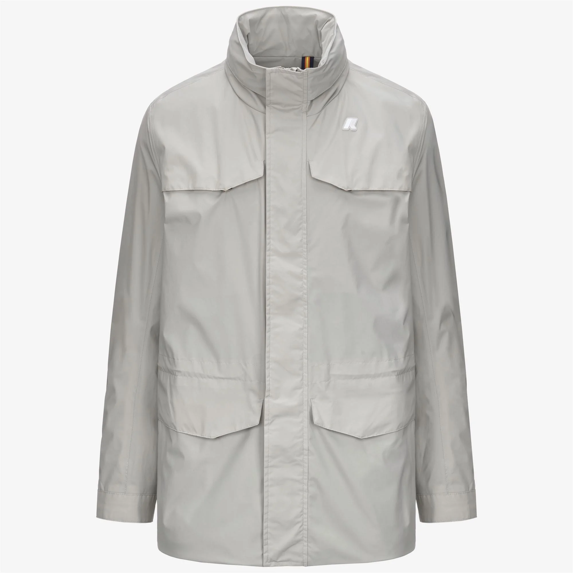 Beige Grey Men's Weather-Resistant Stretch Nylon Jacket Manuel is a men's short field jacket, made from weather-resistant stretch nylon with soft cotton jersey lining only on the front and back that provides superior comfort, excellent protection and a comfortable feel on the skin. The jacket features windproof heat-taped seams on the inside, a flap-covered zip closure, an adjustable hood tucked into the collar and 4 front pockets. - Waterproof, windproof, breathable stretch nylon fabric - Cotton jersey lining - Heat-taped seams - Folding hood tucked into the collar - Ventilation cut-out on the back - Flap-covered zip closure - Adjustable cuffs - 4 pockets - White silicone logo Features Description: Jackets, Mid Gender: Man Season: Spring, Summer Composition Lining B: 100% Nylon External: 5% Elastane, 95% Nylon Lining: 100% Cotton Lining A: 100% Cotton, 35% Polyester Style: K8135HW - Color: 634
