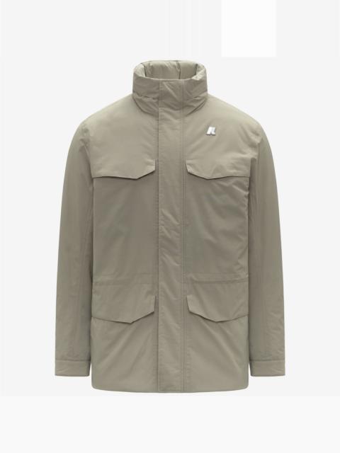 Manuel is a men’s medium-length field jacket designed for transitional weather and early cold spells. Sporty yet functional, it is made from waterproof and windproof recycled Ottoman nylon, with medium-weight padding. It features a high collar with an integrated hood, a zip fastening with protective flap, and a drawcord-adjustable waist for a personalised fit. - Waterproof, water-repellent and windproof recycled Ottoman nylon fabric - Mixed natural down and synthetic padding - Quilted nylon lining - Medium warmth rating - Heat-taped seams - Integrated hood inside high collar - Zip fastening with protective flap - 4 front flap pockets with snap buttons - 2 side zip pockets - Internal drawcord waist adjustment - Adjustable cuffs - Regular fit - White silicone logo patch Features Description: Jackets, Mid Gender: Man Season: Fall, Winter Composition External: 100% Recycled Nylon Lining: 100% Recycled Nylon Padding: 28% Duck Down, 3% Duck Feather, 69% Polyester Style: K8136VW - Color: WMR
