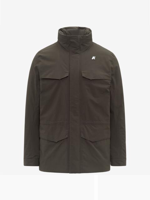 Manuel is a men’s medium-length field jacket designed for transitional weather and early cold spells. Sporty yet functional, it is made from waterproof and windproof recycled Ottoman nylon, with medium-weight padding. It features a high collar with an integrated hood, a zip fastening with protective flap, and a drawcord-adjustable waist for a personalised fit. - Waterproof, water-repellent and windproof recycled Ottoman nylon fabric - Mixed natural down and synthetic padding - Quilted nylon lining - Medium warmth rating - Heat-taped seams - Integrated hood inside high collar - Zip fastening with protective flap - 4 front flap pockets with snap buttons - 2 side zip pockets - Internal drawcord waist adjustment - Adjustable cuffs - Regular fit - White silicone logo patch Features Description: Jackets, Mid Gender: Man Season: Fall, Winter Composition External: 100% Recycled Nylon Lining: 100% Recycled Nylon Padding: 28% Duck Down, 3% Duck Feather, 69% Polyester Style: K8136VW - Color: K89