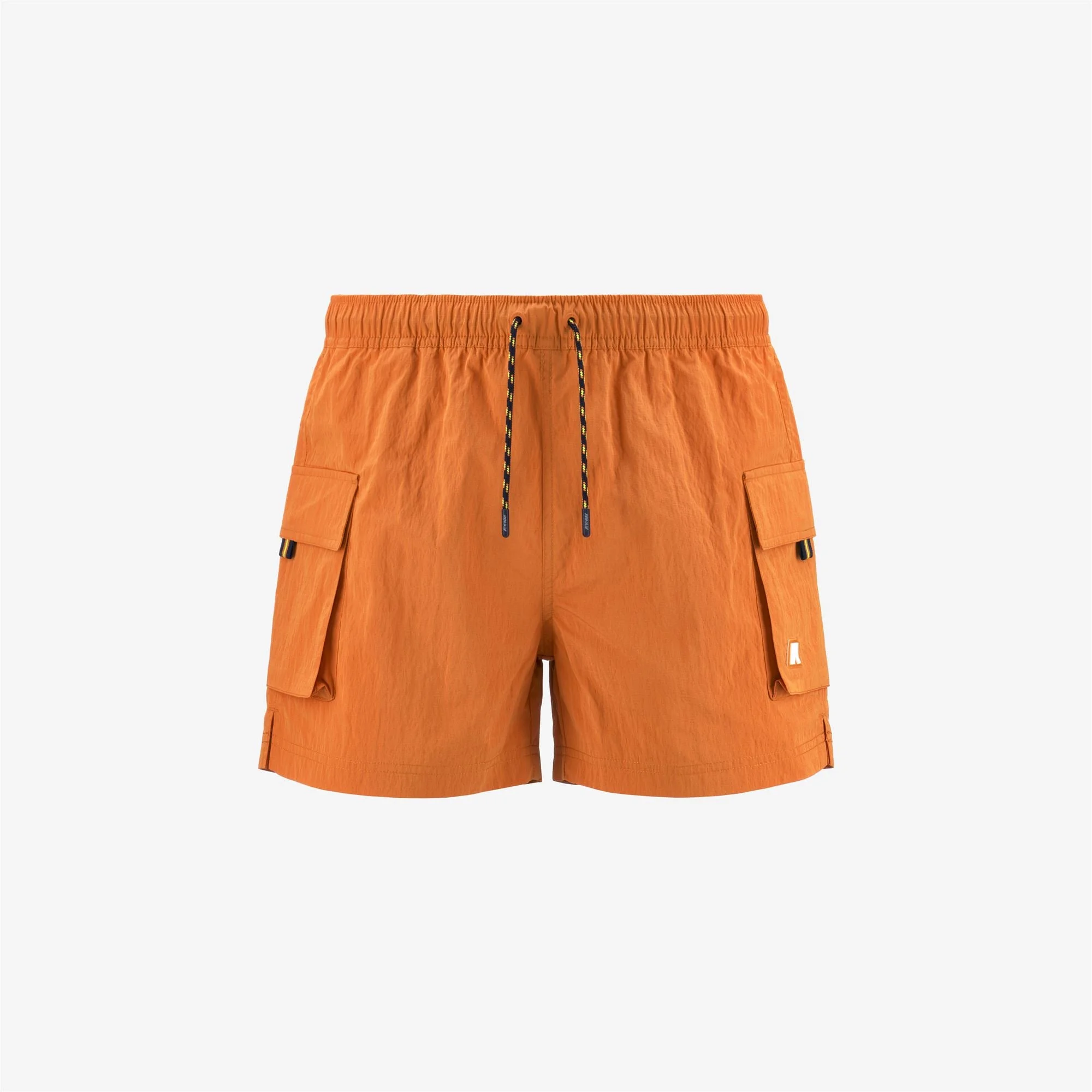 Orange Men's Quick-Dry Swimming Trunks with Cargo Pockets Mellow is a men's short swimming trunks with a practical and functional design. The swimwear features two side cargo pockets, customized with the graphic detail of K-Way tape. Made from quick-drying nylon micro ripstop with high tear resistance, it includes an elasticated waistband, an inner mesh lining, and side vents for maximum freedom of movement. - Quick-dry nylon fabric - Mesh lining - Elasticated waistband - Side pockets - Internal coin pocket - Regular fit Features Description: Bathing Suits, Swimming Trunks Gender: Man Season: Spring, Summer Composition Lining: 100% Polyester External: 55% Nylon, 45% Polyester Style: K41316W - Color: M30