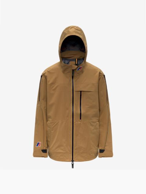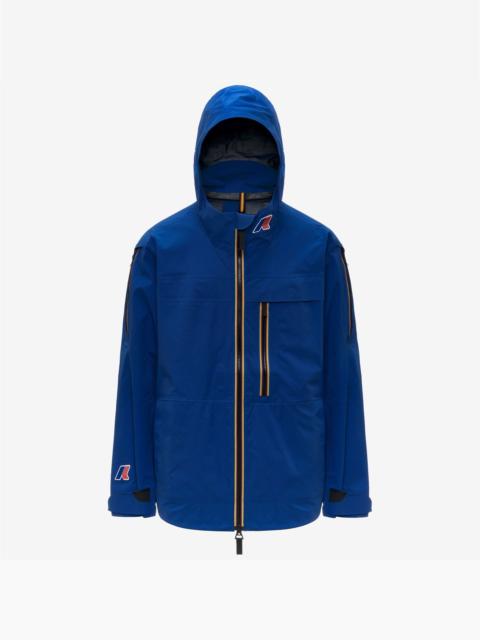 Ollie is a men’s technical jacket built for agile movement on ski and snowboard slopes. Crafted from a three-layer ripstop fabric that is waterproof, windproof, and breathable, it delivers reliable protection in shifting weather conditions. The durable construction, cut in a slightly oversized fit, is enhanced with functional details such as strategic ventilation zips, internal and external pockets, a dedicated ski-pass pocket, and adjustable cuffs. - Three-layer ripstop fabric: waterproof, water-repellent, windproof, breathable - Waterproof rating: 20,000 mm - Breathability: 20,000 g/mq/24h - Heat-taped seams - Brimmed hood - Adjustable drawstring collar - Zip closure with internal storm flap and chin guard - Outer-sleeve ventilation zips - Zipped chest pocket - Side pockets - Internal mesh pockets - Ski-pass pocket on sleeve hem - Adjustable cuffs with hook-and-loop straps - Colored silicone logo patch on the front and sleeve - Signature K-Way tape detail on the back Features Description: Jackets, Mid Gender: Man Season: Fall, Winter Composition Main Fabric: 100% Polyester Style: K21682W - Color: USY