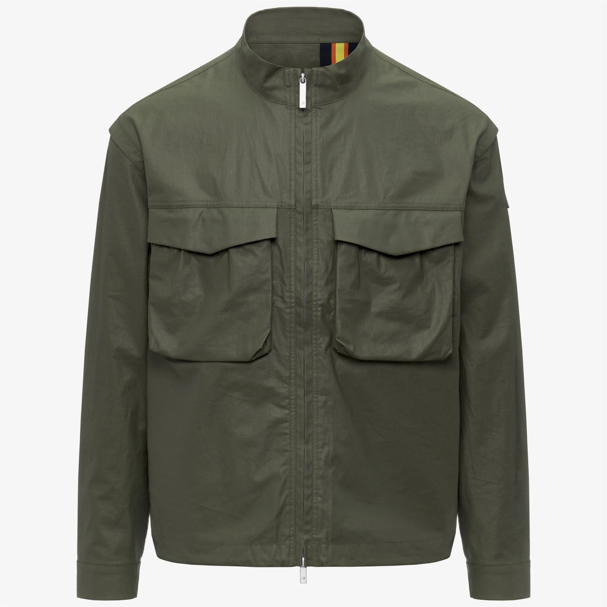 Orian is a men's short jacket with a sophisticated yet functional style, perfect for transitional seasons. Made from wax-coated linen-blend fabric, it offers lightweight protection and a textured finish. The design is completed with paperbag-style pockets, a breathable lining, and practical inner compartments. - Linen-blend fabric with tone-on-tone waxed coating - High collar - Zip fastening with concealing trims - 2 chest patch pockets with hidden zips - 2 side-entry pockets - Snap-button cuffs - Adjustable drawcord hem - Laser-cut side ventilation openings - Regular fit - Tone-on-tone logo patch on the shoulder - K-Way tape insert at the cuff Features Description: Jackets, Short Gender: Man Season: Spring, Summer Composition Entire: 55% Linen, 45% Rayon Style: K3134HW - Color: C32