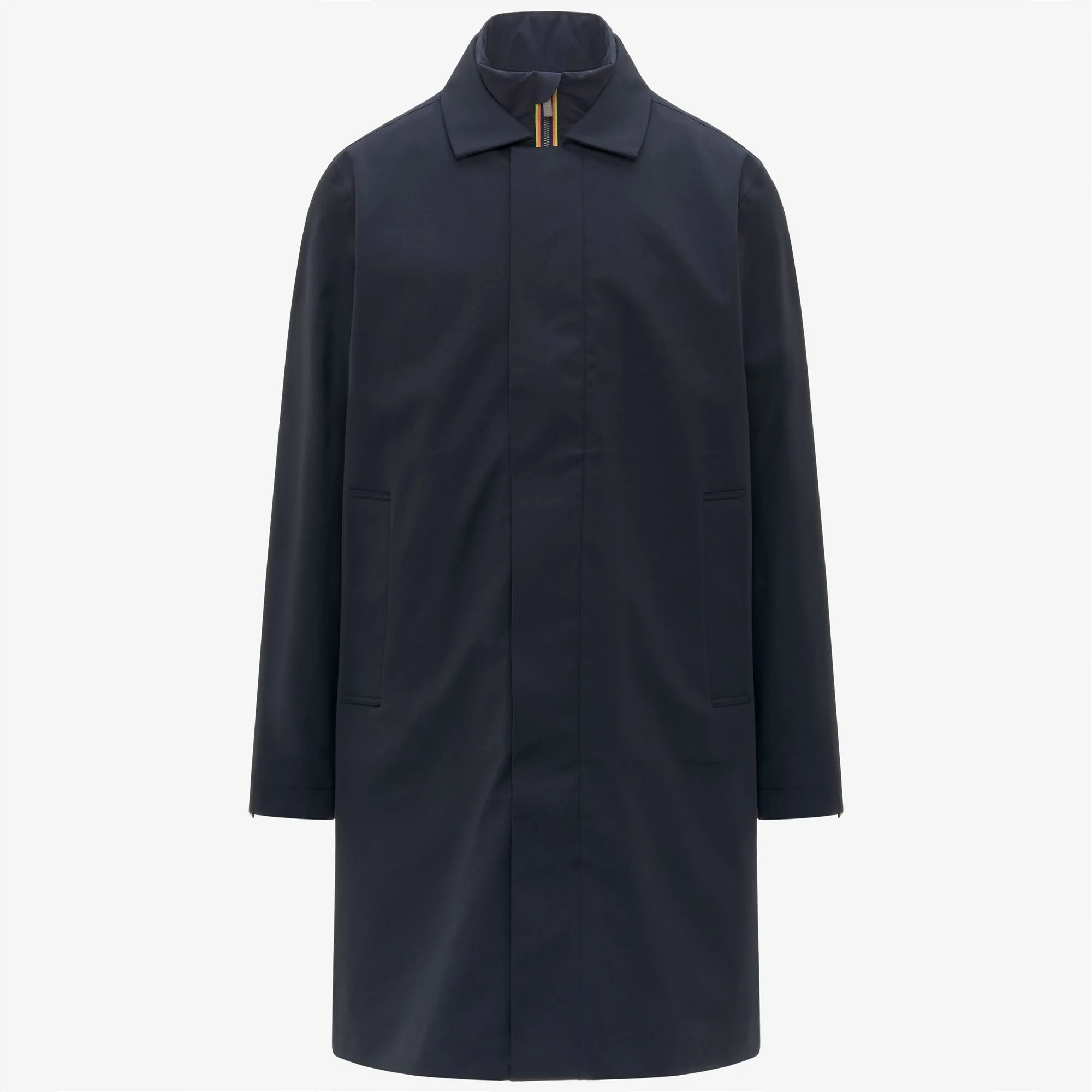 Poirol is a men’s three-quarter length coat with a straight, structured silhouette, ideal for mid-season wear. The outer shell is made from water-repellent technical wool with an insulating membrane and a soft jersey lining. Inside, a detachable vest in water-resistant technical fabric features lightweight PrimaLoft® padding and heat-taped seams for added warmth and protection. The design is finished with a shirt-style collar, covered zip fastening and concealed buttoned pockets for a clean, understated look. - Three-layer water-repellent, windproof wool-blend fabric - Insulating membrane - Jersey lining - Detachable vest in water-repellent technical fabric - Adjustable drawcord vest hem - Heat-taped seamsaShirt-style collar - Zip fastening with protective flap - 2 concealed snap-button pockets - Regular fit - K-Way tape detail at the cuff Features Description: Jackets, 3/4 LENGTH Gender: Man Season: Fall, Winter Composition Entire: 70% Polyester, 30% Wool Style: K21474W - Color: BCE