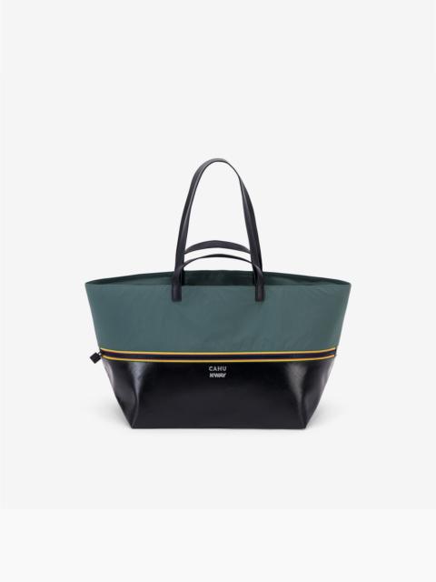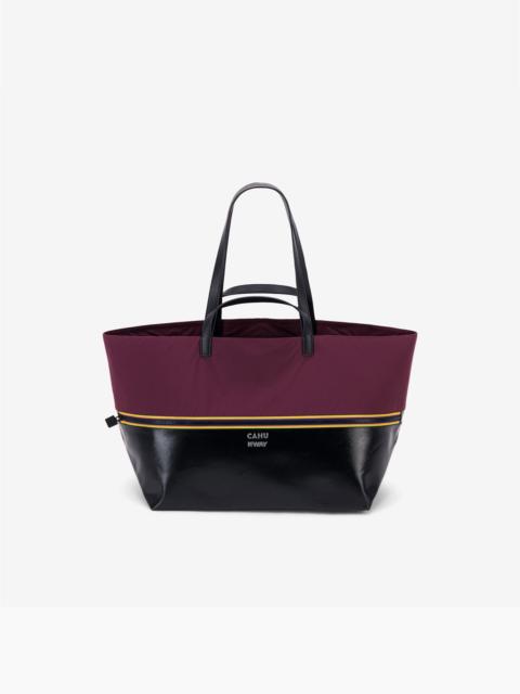 Black and red Unisex Tote Bag with Waterproof PVC and Nylon K-Way and CAHU reinvent CAHU’s iconic Pratique bag. Two colors, one intention: Bigout is the boldness of a duo. The combination of CAHU’s PVC canvas and K-Way’s 4.0 nylon gives life to a unique bag, two-tone and resistant to everything: water, time, and everyday challenges. The unmistakable K-Way tricolor zip completes the design as a signature detail. - Two-tone bag, versatile for every look - Zipped cabas in waterproof PVC canvas and 4.0 nylon - Black lining 100% 4.0 nylon - Short leather handles and long leather straps (to carry by hand, on the arm, or on the shoulder) - Inner pocket for essentials - K-Way | CAHU logo embossed in silver - 65 × 32 × 26 cm - Handle height: 8 cm - Shoulder strap height: 29 cm Features Description: Bags, TOTE BAG Gender: Unisex Season: Fall, Winter Composition Main Fabric: 50% Polyvinyl Chloride, 50% Recycled Nylon Lining: 100% Cotton Style: K5137WW - Color: A03