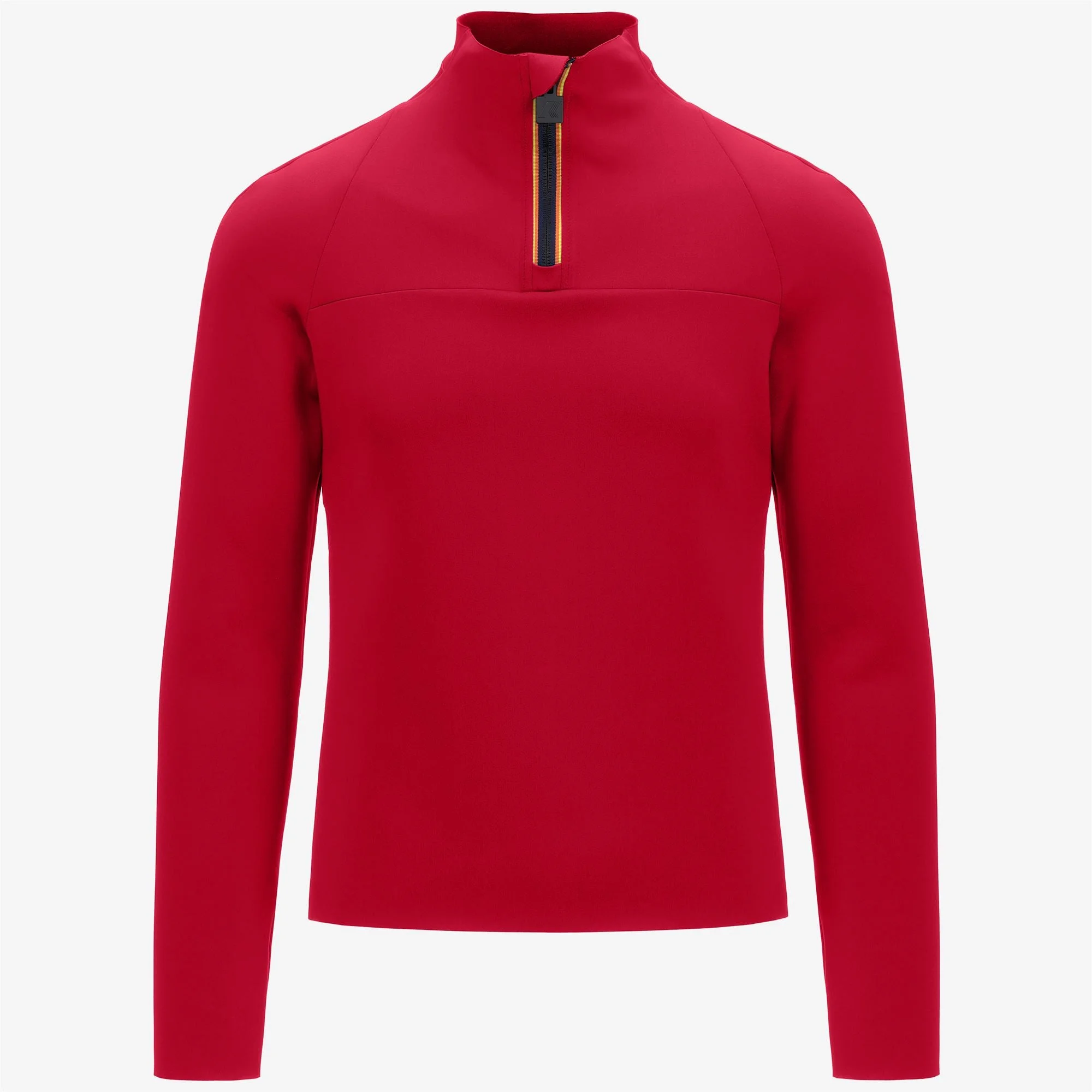 Dark Red Men's Slim Fit Scuba Turtleneck Sweater with Half Zip Shisy is a men's long-sleeved turtleneck sweater crafted from scuba fabric with a slim fit, perfect for leisure and sports occasions. The garment features an essential design with oblique seams that enhance the shoulder shape, a high neck, and a half zip closure in the iconic colors of the K-Way tape. - Men's scuba turtleneck sweater - Slim fit - Frontal half zip opening Features Description: T-Shirts & Top, T-Shirt Gender: Man Season: Fall, Winter Composition Entire: 12% Elastane, 88% Polyester Style: K21482W - Color: WKZ