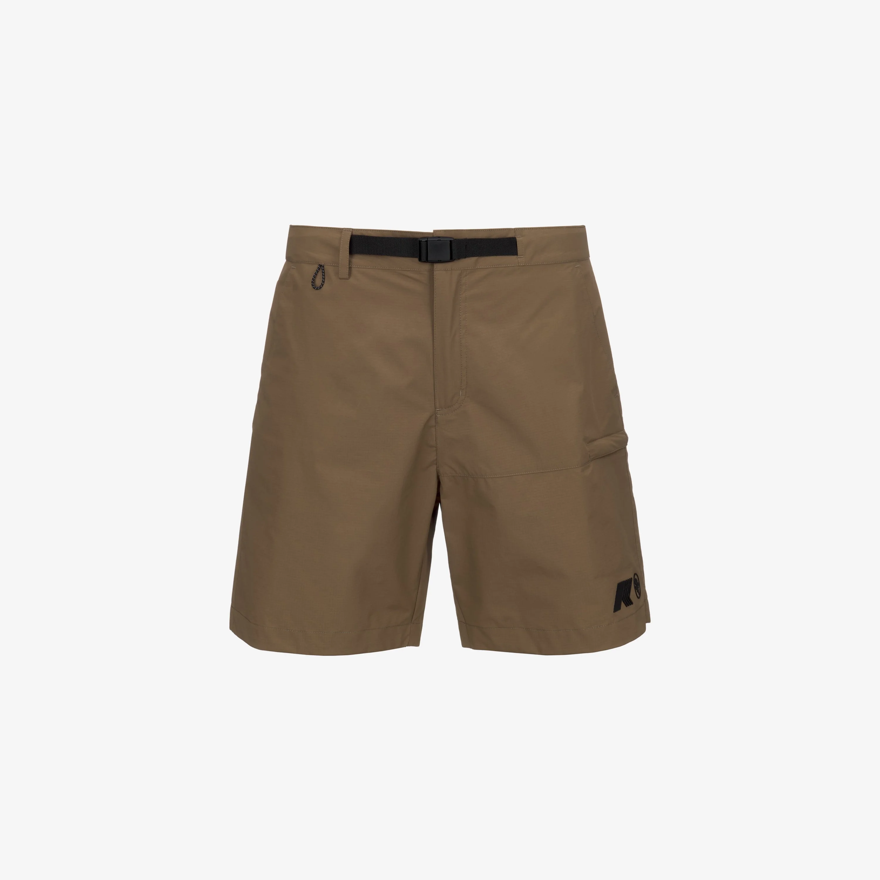 Brown Green Men's Cargo Outdoor Shorts with Waterproof Features Taprinne men's Bermuda shorts are designed by K-Way to ensure comfort and freedom of movement. Made from waterproof and water-repellent recycled ripstop nylon, the model is finished with a reflective elastic rope carabiner and other functional details. Customized with the K-WAY x CORAL GARDENERS logo. - Waterproof and water-repellent recycled ripstop nylon fabric - Waistband with belt loops - Front zip and carabiner closure - Side zip pocket - Back pockets - Internal coin pocket - Reflective elastic rope keyring loop - Regular fit - K-WAY x CORAL GARDENERS logo Features Description: Shorts, Cargo Gender: Man Season: Spring, Summer Composition Entire: 100% Recycled Nylon Style: K8133XW - Color: 045