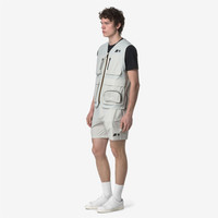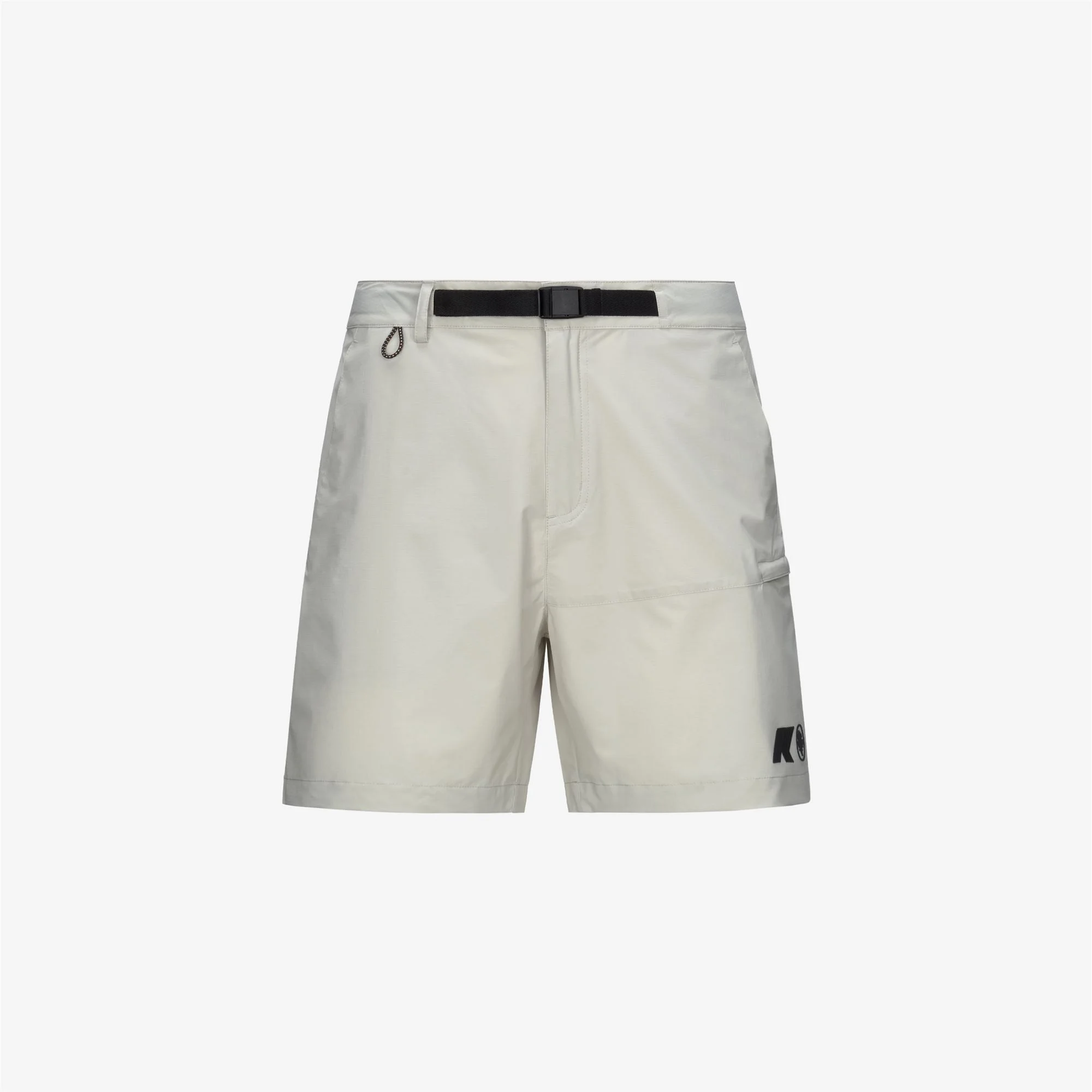 Beige Grey Men's Waterproof Cargo Shorts with Reflective Details Taprinne men's Bermuda shorts are designed by K-Way to ensure comfort and freedom of movement. Made from waterproof and water-repellent recycled ripstop nylon, the model is finished with a reflective elastic rope carabiner and other functional details. Customized with the K-WAY x CORAL GARDENERS logo. - Waterproof and water-repellent recycled ripstop nylon fabric - Waistband with belt loops - Front zip and carabiner closure - Side zip pocket - Back pockets - Internal coin pocket - Reflective elastic rope keyring loop - Regular fit - K-WAY x CORAL GARDENERS logo Features Description: Shorts, Cargo Gender: Man Season: Spring, Summer Composition Entire: 30% Poliuterano Termopla, 70% Recycled Nylon Style: K4141KW - Color: 634