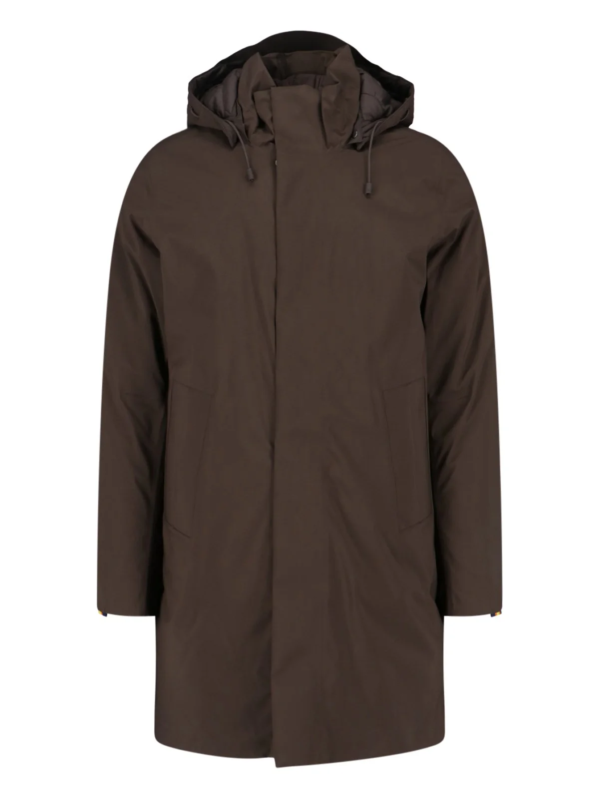 K-WAY "THOMAL" PADDED JACKET IN GREEN FABRIC WITH DRAWSTRING HOOD, HIGH NECK, ZIP CLOSURE, LONG SLEEVES, TWO FRONT WELT POCKETS, STRAIGHT HEM. PRODUCT INFO PRODUCT CODE K7136IWB38 COMPOSITION: 76% POLYESTER, 24% THERMOPLASTIC POLYURETHANE SIZE AND FIT: REGULAR FIT MADE IN: CHINA