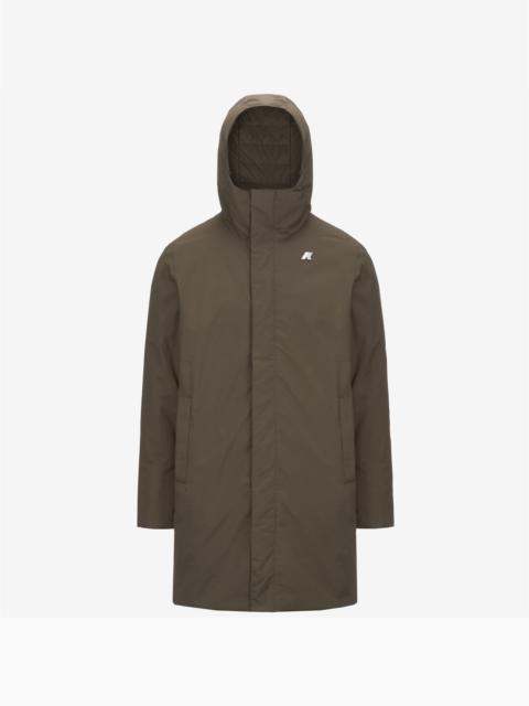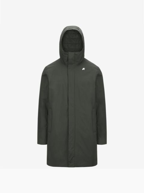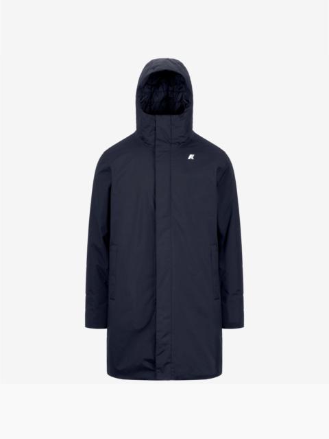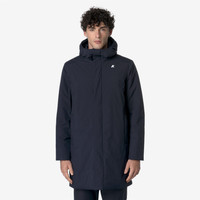 Blue Men's Long Warm Jacket with Recycled Materials La giacca lunga da uomo Thomas e progettata per la mezza stagione perche combina l'esterno in nylon ottoman dalla mano fresca e croccante con l'imbottitura mista in piuma e poliestere e la fodera in nylon riciclato che rispettano l'ambiente. All'interno il capo svela una rifinitura curata in ogni dettaglio con trapuntatura a righe orizzontali nella parte alta e il nastro multicolor K-Way al centro per un accento distintivo e deciso. - Tessuto nylon ottoman riciclato, impermeabile, idrorepellente, antivento - Imbottitura in piuma e sintetica - Fodera in nylon riciclato - Grado di calore medio - Cuciture termonastrate - Cappuccio non staccabile regolabile con corda elastica e fermacorda - Chiusura con zip coperta dalla patta - Polsi con ghetta interna - 2 tasche con zip - Fitting regolare - Logo in silicone bianco Features Description: Jackets, Long Gender: Man Season: Fall, Winter Composition External: 100% Recycled Nylon Lining: 100% Recycled Nylon Padding: 27% Duck Down, 3% Duck Feather, 70% Polyester Style: K31356W - Color: K89
