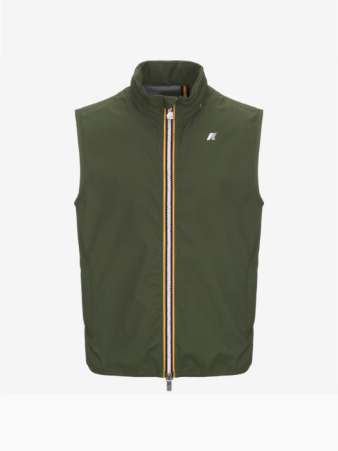 Lichen green Men's Waterproof Stretch Vest for Variable Weather The Valen vest is designed to be worn over a T-shirt during the transitional season or under a jacket when temperatures start to drop. It's crafted from stretch technical fabric that allows for unrestricted movement while providing rain and wind protection, with water resistance up to 10000 mm. The interior is lined with an insulating membrane with all-over silver-tone K-Way lettering print. Functional details, such as zipped pockets, detachable hood, and elasticated hem ensure an easy, comfortable fit. - Waterproof, windproof and breathable stretch polyester fabric - DWR (Durable Water Repellent) treatment - Water resistance: 10000 mm water column - Logo-printed interior membrane - Heat-taped seams - Detachable, adjustable drawstring hood with stoppers - Zip fastening - 2 zipped pockets - Adjustable drawstring hem - Slim fit - White printed logo Features Description: Jackets, Vest Gender: Man Season: Spring, Summer, Fall, Winter Composition Entire: 24% Poliuretane, 76% Recycled Polyester Style: K5127SW - Color: V15