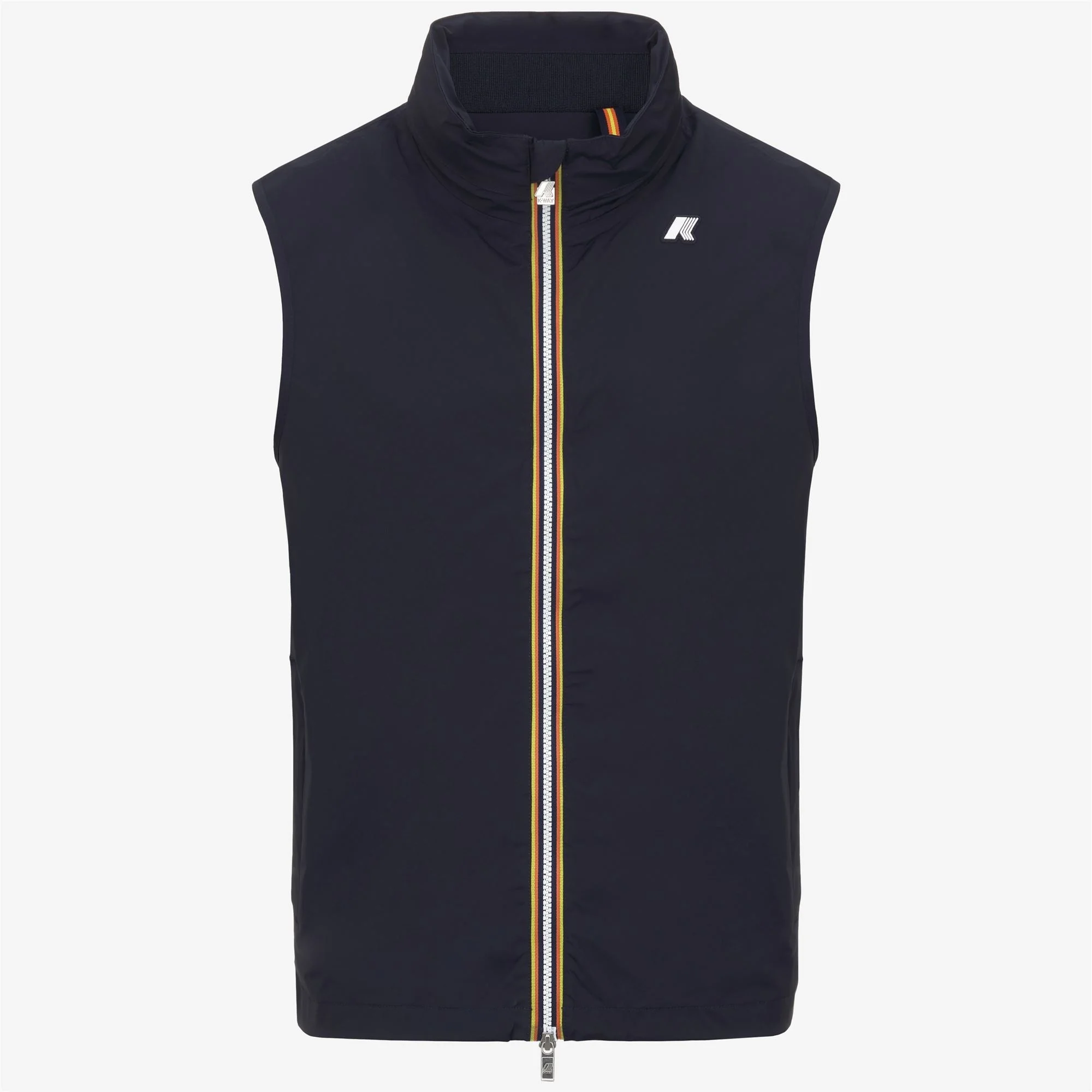 Blue Men's Weather-Resistant Nylon Vest with Adjustable Hem Valen is a men's waistcoat designed either to be worn over a T-shirt during transitional seasons or under a K-Way jacket when temperatures drop. It is made from stretch nylon which is weather-resistant up to 5000 columns of water, finished on the inside with a soft grey melange cotton jersey lining that provides protection and optimal comfort on the skin. - Waterproof, windproof, breathable stretch nylon fabric - Cotton jersey lining - Heat-taped seams - Zip closure - Ribbed collar - Adjustable drawstring hem - 2 zipped pockets - Slim fit - White silicone logo Features Description: Jackets, Vest Gender: Man Season: Spring, Summer Composition Lining B: 100% Nylon External: 5% Elastane, 95% Nylon Lining: 100% Cotton Lining A: 100% Cotton, 35% Polyester Style: K3123TW - Color: K89