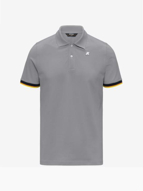 Grey Blue Men's Stretch Cotton Pique Polo Shirt for City Wear The Vincent men’s stretch cotton pique polo shirt combines elegance and functionality to suit any look. The design features short sleeves with striped trims in classic K-Way colours. Finished with side slits for freedom of movement. - Stretch pique fabric - Ribbed collar - Striped collar underside - Two-button fastening - Branded buttons - Striped sleeve trims - Side slits - Slim fit - White silicon logo patch Features Description: Polo Shirts, Polo Gender: Man Season: Spring, Summer, Fall, Winter Composition Entire: 95% Cotton, 5% Elastane Style: K1125BW - Color: WA9