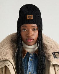 Beloeil is a ribbed beanie with a nubuck logo patch in the center. Fabric details & care - Shell: 90% wool, 10% cashmere - Dry clean only