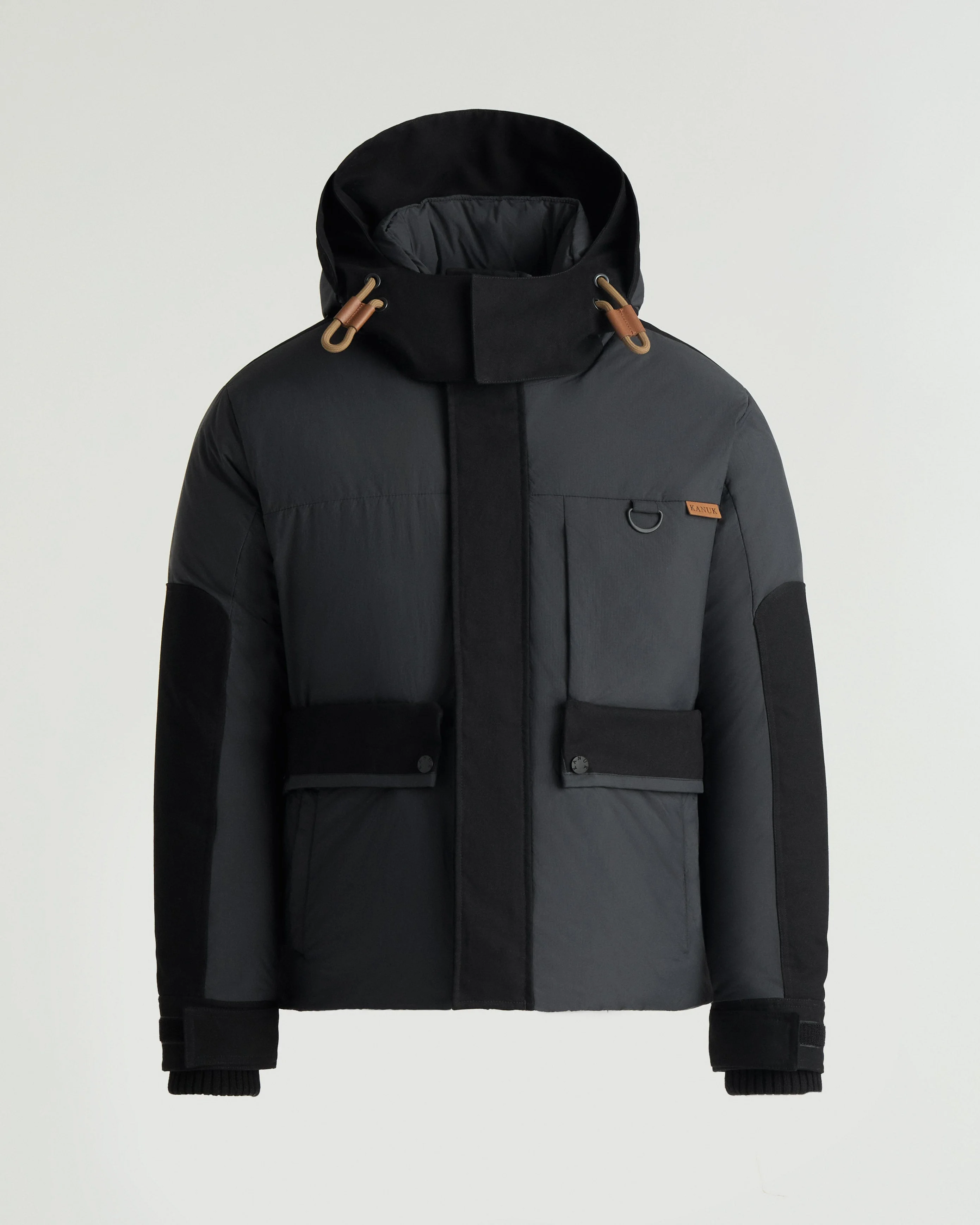 Equinoxe is a mixed media puffer crafted from ripstop and canvas, insulated with duck down, and designed with a removable hood. - Comfort zone: -10°C to -20°C - Kanuk’s iconic logo patch on left collar - Mixed media with ripstop and canvas - Removable hood with visor - Large double-entry patch pockets - Wool-blend rib knit storm cuffs - Elasticized cuffs with adjustable sleeve tabs - Center front zipper with velcro placket - Zippered side slits Fabric details & care - Water-resistant - Shell: Brushed Ripstop in 100% nylon - Mixed media: Canvas in 100% cotton - Rib: 100% merino wool - Lining: 100% polyester - Insulation: RDS-certified 90/10 duck down, 800 fill power - Machine washable Sizing & fit - Center back length for size medium: 28" / 72 cm - Relaxed fit - Model is 6'1" and wears a size M - Fits true to size