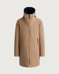 Halloway is a mid-calf 3-in-1 coat with an insulated inner layer, hand-warming pockets, and an adjustable elastic hood. - Comfort zone: 0 °C to -10 °C - Insulated with Thindown - Removable quilted inner jacket with hood - Center front zipper closure - Zippered hand pockets - Adjustable hood with bungee cord Fabric details & care - Water-resistant, breathable, windproof - Shell: Natural Tech in 50% cotton, 50% polyester - Contrast: Soft Touch in 100% recycled polyester - Lining: Soft Touch in 100% recycled polyester - Insulation: Thindown - Dry clean only Sizing & fit - Relaxed fit - Model is 6'3" and wears a size M - Fits true to size