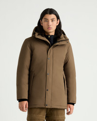 Kanuk's bestselling jacket, Mont-Royal is a mid-length insulated coat built for daily wear. - Comfort zone: -20°C to -25°C - Duck down fill - Fixed hood with bungee drawcord - Center front zipper with snap placket - Zippered hand pockets - Inset storm cuffs - Made in China Fabric details & care - Water-resistant, breathable, windproof - Shell: Mini-Ottoman in 100% recycled polyester - Lining: Soft Touch in 100% polyester - Insulation: 90/10 RDS duck down, 800 fill power - Dry clean only Sizing & fit - Center back length for size M: 33.5" / 85 cm - Relaxed fit - Model is 6'2" and wears a size M - Fits true to size