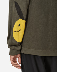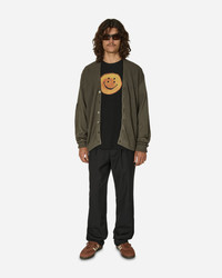 KAPITAL 10G ECO Knit Elbow Coneybowy Short Cardigan Grey Combining comfort with the eccentric design typical of the Kapital catalog, each piece becomes a unique staple. Crafted from acrylic and wool, the oversized short cardigan features a front button closure and knitted smiley at elbows. - 90% Acrylic, 10% Wool - Overiszed Fit - Button Closure - Knitted Smiley Logo at Elbows - Ribbed Cuffs and Hem - Made in Japan - Style Code: EK-1591KN GRAY SIZE & FIT Measures (Size 3): 62cm Shoulders, 68cm Chest, 62cm Sleeve, 66cm Length, 56cm Hem. Model is 6ft 1in/1.84m with 32"/83cm chest and wears size 3.