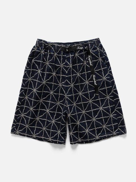 These shorts from KAPITAL blend the laid-back comfort of loungewear with the artistry of vintage reconstruction. Made from a lightweight 10oz denim with an indigo-on-indigo wash, they’re finished with assorted sashiko-style patchwork and boro-inspired contrast panels at the hem. The relaxed silhouette is balanced by front pleats and clean rear welt pockets, nodding to classic menswear tailoring while keeping the look effortless. DETAILS - K2404SP182 - 65% linen, 35% cotton - 10oz indigo-on-indigo denim - Relaxed fit - Front pleat desgin - Belt loops - Button front closure - Seam welt hand pockets - Welt back pockets - Patchworked hem with contrast indigo panels - Made in Japan