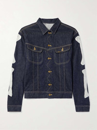 KAPITAL's 'Mexican Tuxedo' jacket is crocheted with bones, a detail inspired by 'Dia de los Meurtos'. It's made from 11.5oz. denim and has the look of a classic trucker, with a squared collar, knife pleats and stamped metal buttons. Size & Fit - Fits true to size. Take your normal size - Designed for a relaxed fit - Mid-weight, non-stretchy denim - Model is shown wearing an IT 48 - Model measures: chest 38"/ 96cm, height 6'0"/ 183cm Details & Care - Blue denim, white crochet - Button fastenings - 100% cotton - Machine wash