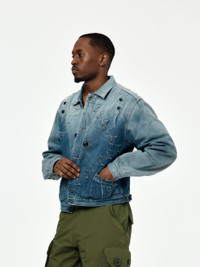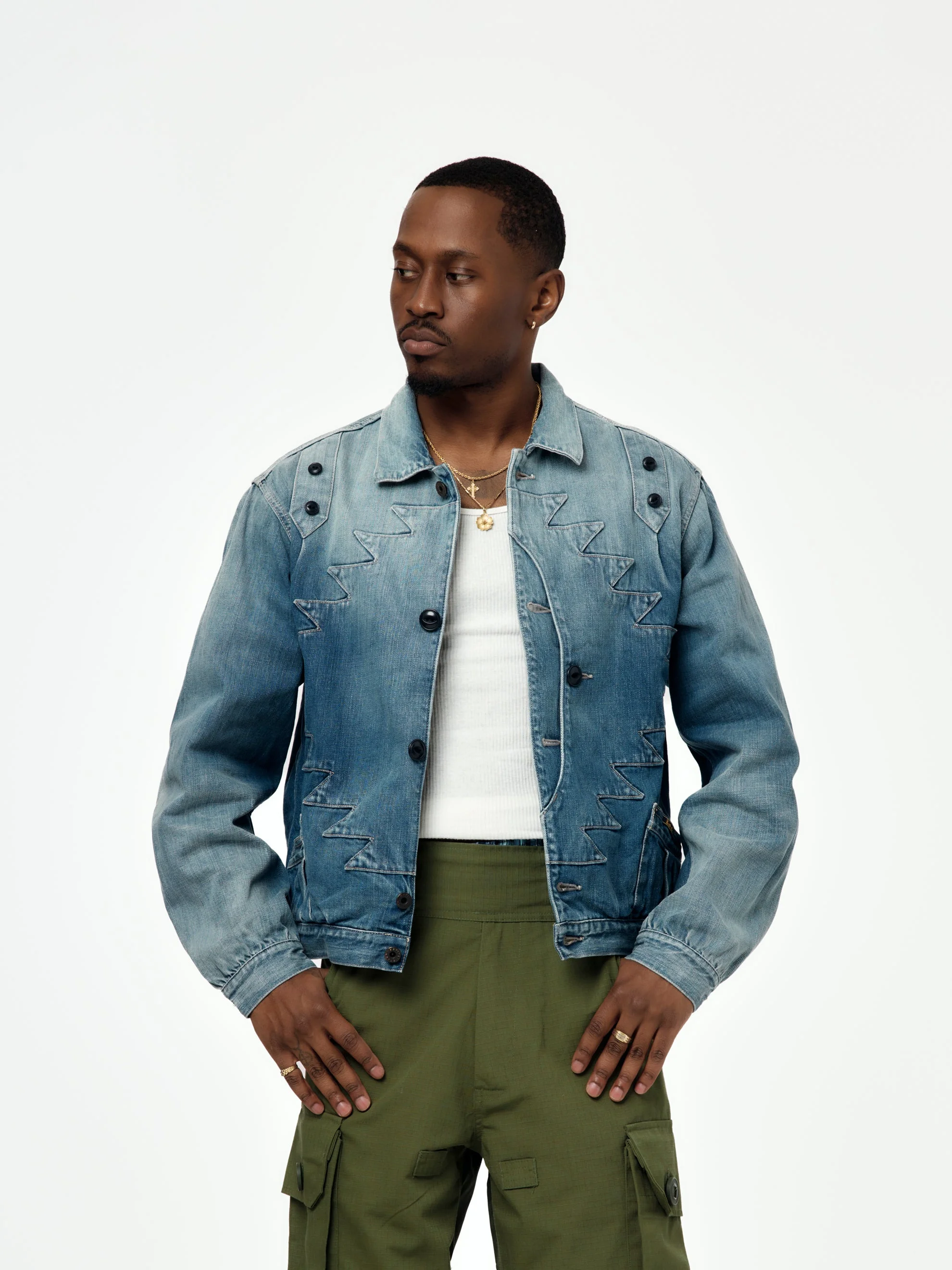 The Santo Domingo Thunderbird JKT (PRO) is Kapital at its finest—a true masterclass in Japanese denim craftsmanship. Cut from 12oz indigo denim, the jacket features intricate Chimayo-inspired embroidery at the front and elbows, blending Southwestern motifs with Kapital’s offbeat precision. Scattered button closures and a functional back cinch nod to vintage Western tailoring, adding both form and function. No gimmicks—just detail-driven design with soul. Made in Japan. SKU: K2504LJ176-PRO