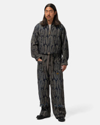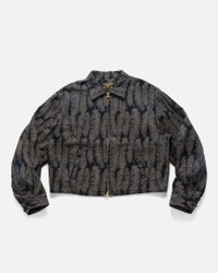 The KAPITAL 12oz MAGPIE Drizzler JKT offers a cropped, vintage-inspired silhouette made from a custom-woven cotton denim with all-over magpie feather jacquard. Frayed edges on the back yoke nod to traditional sashiko repairs, giving the piece a distinctive deconstructed finish. A statement piece for transitional layering and bold casual styling. DETAILS - K2403LJ020 - 100% cotton - Japanese jacquard-woven fabric - Cropped fit - Frayed back yoke with vent - Classic collar - Double zipper closure with metal ring pulls - Welt hand pockets - Button adjustable cuffs - Button adjustable hem - Made in Japan