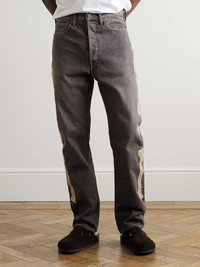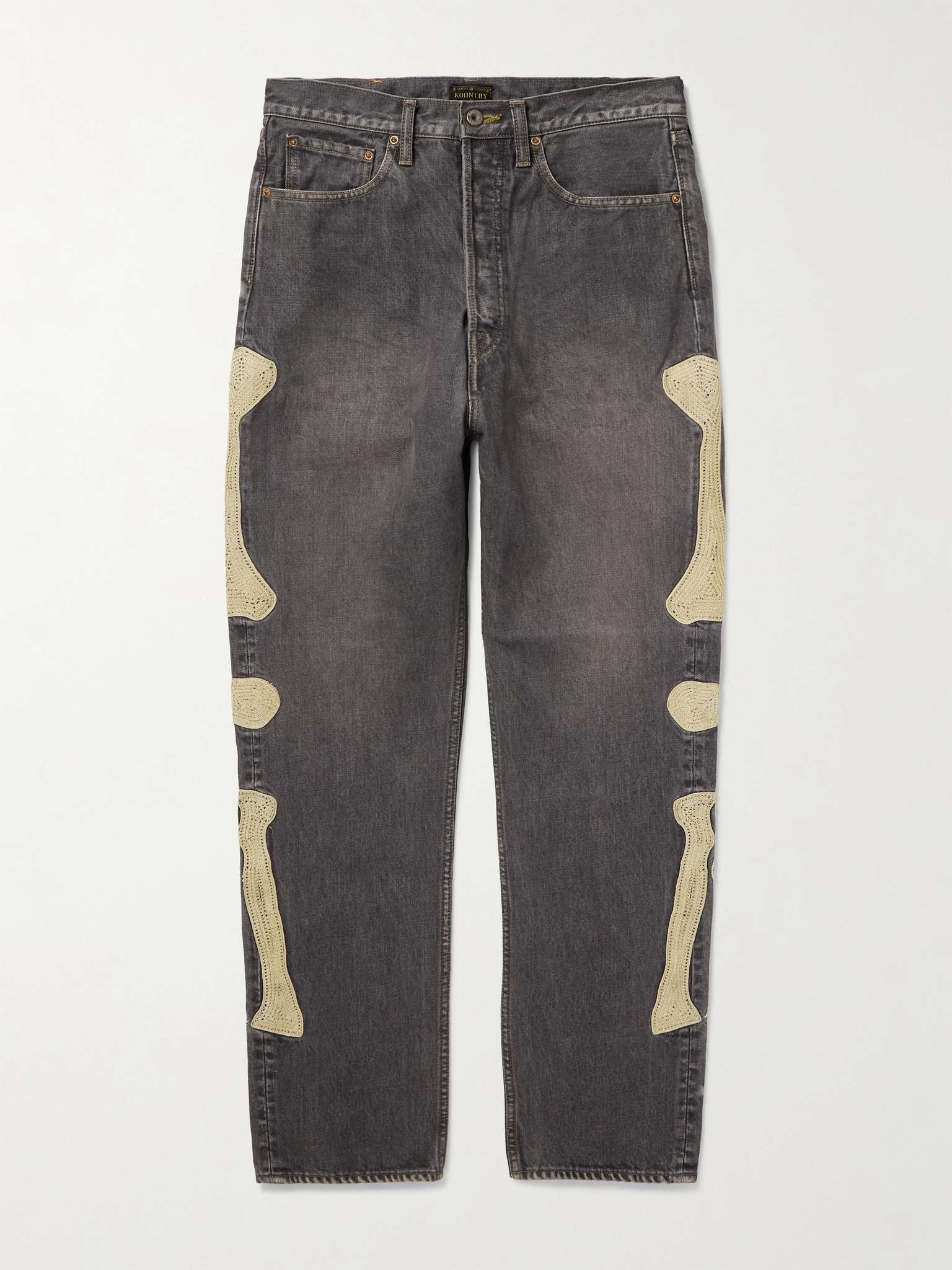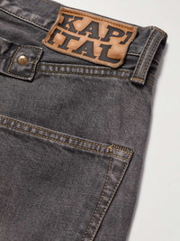 Inspired by Mexico's Day of the Dead, KAPITAL's jeans are trimmed with a crocheted version of its signature skeleton bones. They've been made in Japan from 14oz. denim and have an adjustable tab at the back to bring in the waist. Size & Fit - Fits true to size, however those who are between sizes should take the larger size - Regular-straight leg, low-crotch style - Mid-weight, non-stretchy fabric - Model is shown wearing a 34 - Model measures: waist size 32, height 6'2"/ 188cm Details & Care - Black denim, ecru crochet - Button fastenings - 100% cotton - Hand wash