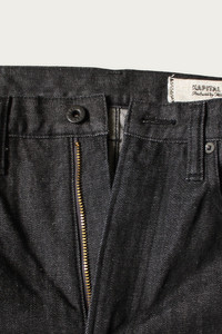 A slightly playful twist on standard 5 pocket denim. Black 14 ounce denim with a straight fit, zip fly, and plenty of character right from first wear. - 14oz black denim - 5 pocket construction - Straight leg fit - Zip fly - Made in Japan