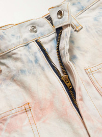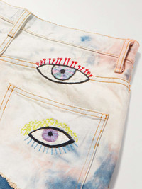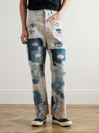These tie-dyed jeans showcase KAPITAL's mastery of patchwork. The thighs are collaged with various washes of denim, while embroidered eyes are scattered throughout. They're cut for a baggy fit with flared hems. Size & Fit - Fits true to size. Take your normal size - Those with muscular thighs may wish to take the next size up - Relaxed slim cut, low-crotch style - Mid-weight, non-stretchy denim - Model is shown wearing a 32 - Model measures: waist size 30, height 6'3"/ 191cm Details & Care - Multicoloured denim - Snap and zip fastening - 100% cotton - Hand wash