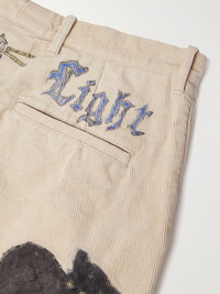 KAPITAL's 'Ivy' trousers are printed with memorial-inspired graphics hand-drawn by the label's 'KOUNTRY' craftsmen. They're cut from cotton-corduroy and have wide, pleated legs with turned-up cuffs. Wear yours with a contrasting patterned sweater. Size & Fit - Size 1 = W28, 2 = W30, 3 = W32, 4 = W34, 5 = W36 and 6 = W38 - Fits true to size. Take your normal size - Wide leg, low-crotch style - Mid-weight, non-stretchy fabric - Model is shown wearing a 3 - Model measures: waist size 32, height 6'0"/ 183cm Details & Care - Multicoloured cotton-corduroy - Button and zip fastening - 100% cotton - Machine wash