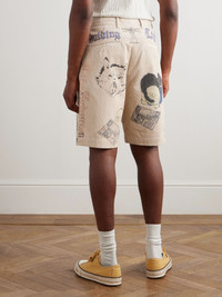 Memorial Paint Straight-Leg Printed Cotton-Corduroy Shorts Beige