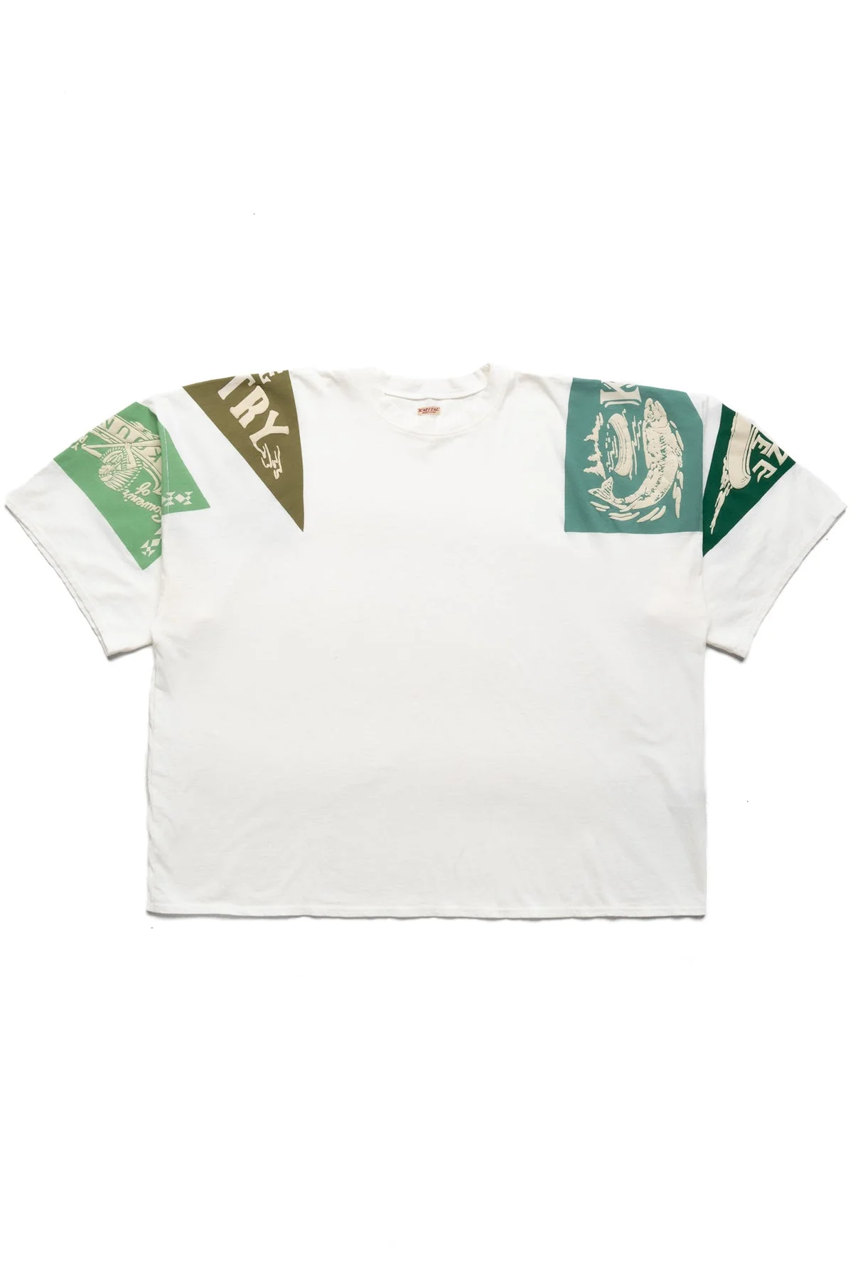 - A big silhouette T-shirt - A pennant inspired by the Yukon River is printed on both shoulders. - Loose fit - Color: Green - 100% Cotton - Made In Japan - Model is 6'2 wearing a size 3