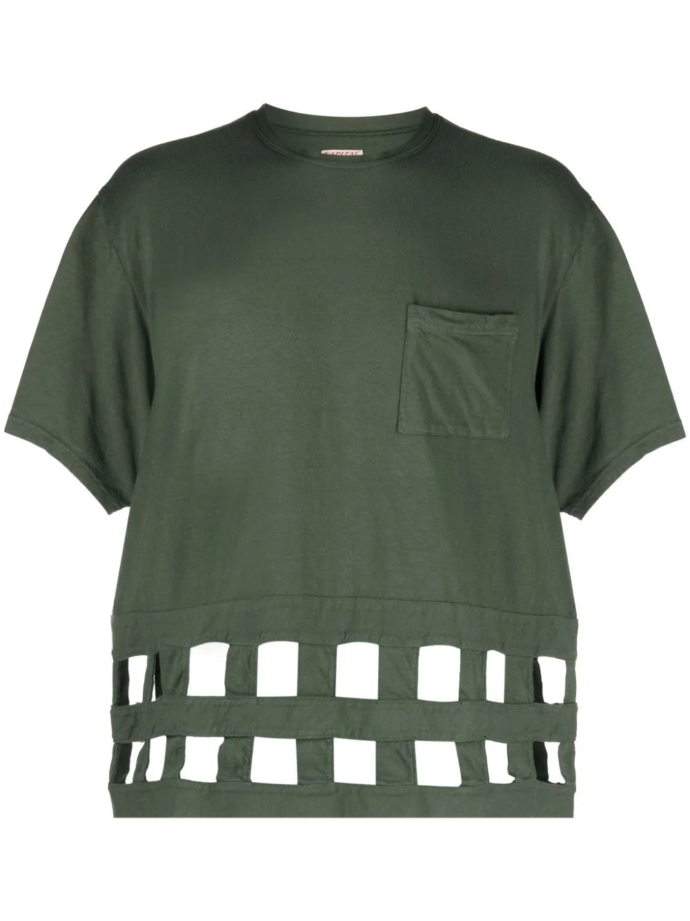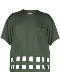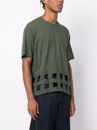 Windowpane eyelet-detail cotton T-shirt Highlights - Khaki - Cotton - Eyelet detailing - Crew neck - Short sleeves - Straight hem Imported Composition Cotton 100% SIZE & FIT Model measurements Height 6 ft 3 in(1.9 m) Bust/Chest 35.03 in(89 cm) Hips 36.61 in(93 cm) Waist 29.13 in(74 cm) FittingInformation Designed for a boxy fit, intended for a loose fit throughout Made from a midweight non-stretch fabric, this piece offers minimal elasticity when worn This piece fits true to size – take your usual size Washing instructions Machine Wash
