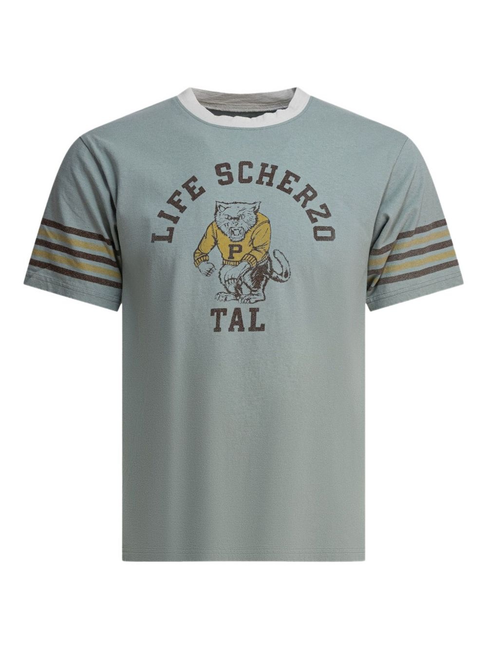 graphic striped-sleeve T-shirt Highlights Imported Composition Cotton 100%