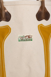 - Color: Ecru x Mustard - A tote bag made from durable No.4 canvas. - 100% Cotton canvas - Leather handles - Comes with a keychain - Made in Japan Dimensions: Length: 22", Width: 7.5", Height: 13.5"