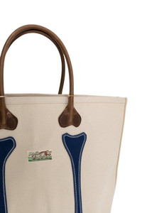 - Color: Ecru x Navy - A tote bag made from durable No.4 canvas. - 100% Cotton canvas - Leather handles - Comes with a keychain - Made in Japan Dimensions: Length: 22", Width: 7.5", Height: 13.5"
