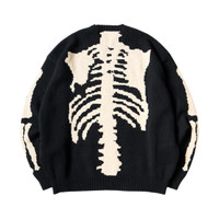 KAPITAL ITEM INFO: Kapital delivers the perfect lightweight sweater. Warm, breathable, and effortlessly draped. Made from 100% wool in a medium-gauge knit, it features natural distressing and the brand’s signature bones motif on the arms and back. Designed for a roomy, oversized fit. 100% Wool Medium-Gauge Knit Natural Distressing Kapital Bones Motif Oversized Draped Fit Made in Japan SKU : EK-1537KN