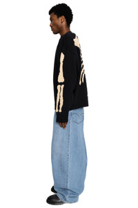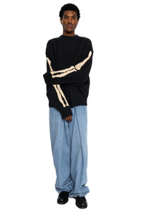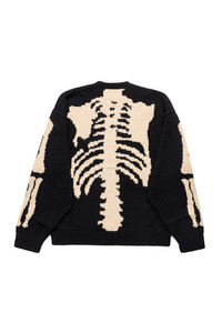 - Crewneck sweater made of 5G wool knit. Pop design with bone. - Loose fit - Color: Black - Made In Japan - Model is 6'2 wearing a size 3