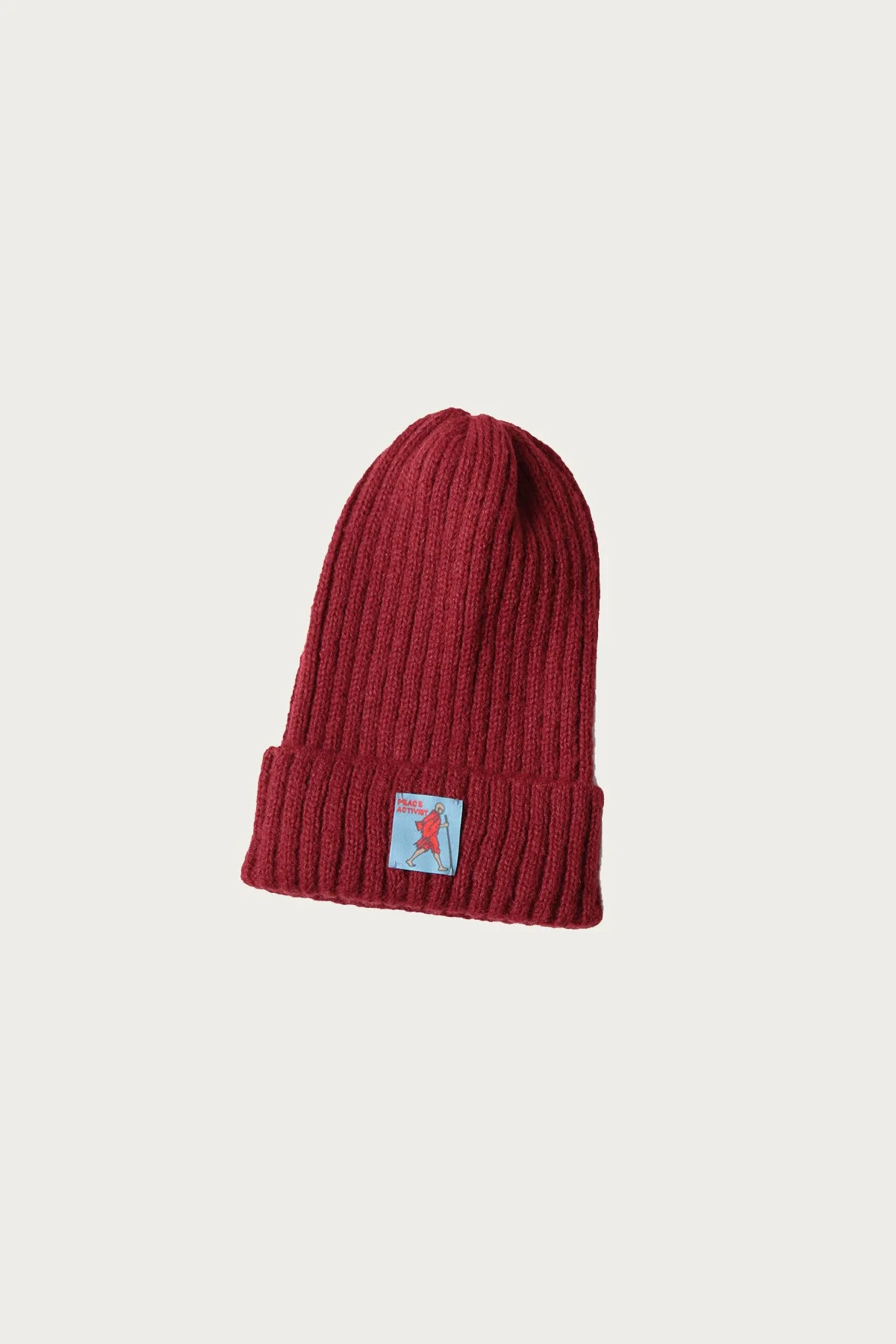 A simple everyday cap, these have been made with a five gauge knit out of Japanese cotton that gives them a substantial feel without weighing it down. This is the type of beanie you could wear all year long. Burgundy red with "Peace Activist" tag. One size fits most. - 54% Acrylic, 31% Nylon, 15% Wool - Peace Pilgrim Tag - Made in Japan