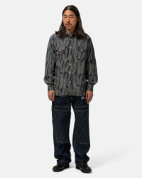 A relaxed shirt with a soft drape, the KAPITAL 5oz MAGPIE Denim HUSKY Western Shirt is made from lightweight cotton denim and printed with the brand’s signature feather motif. It features a vintage-inspired pointed yoke, twin flap pockets, and a raw-edged shoulder ventat the rear for added dimension. Designed for transitional layering with denim or fatigue pants. DETAILS - K2403LS024 - 100% cotton - 5oz jacquard denim fabric - Western-style fit - Pointed collar - Pearl snap button closure - Button flapped chest pockets - Frayed rear yoke vent - Button cuffs - Curved hem - Made in Japan