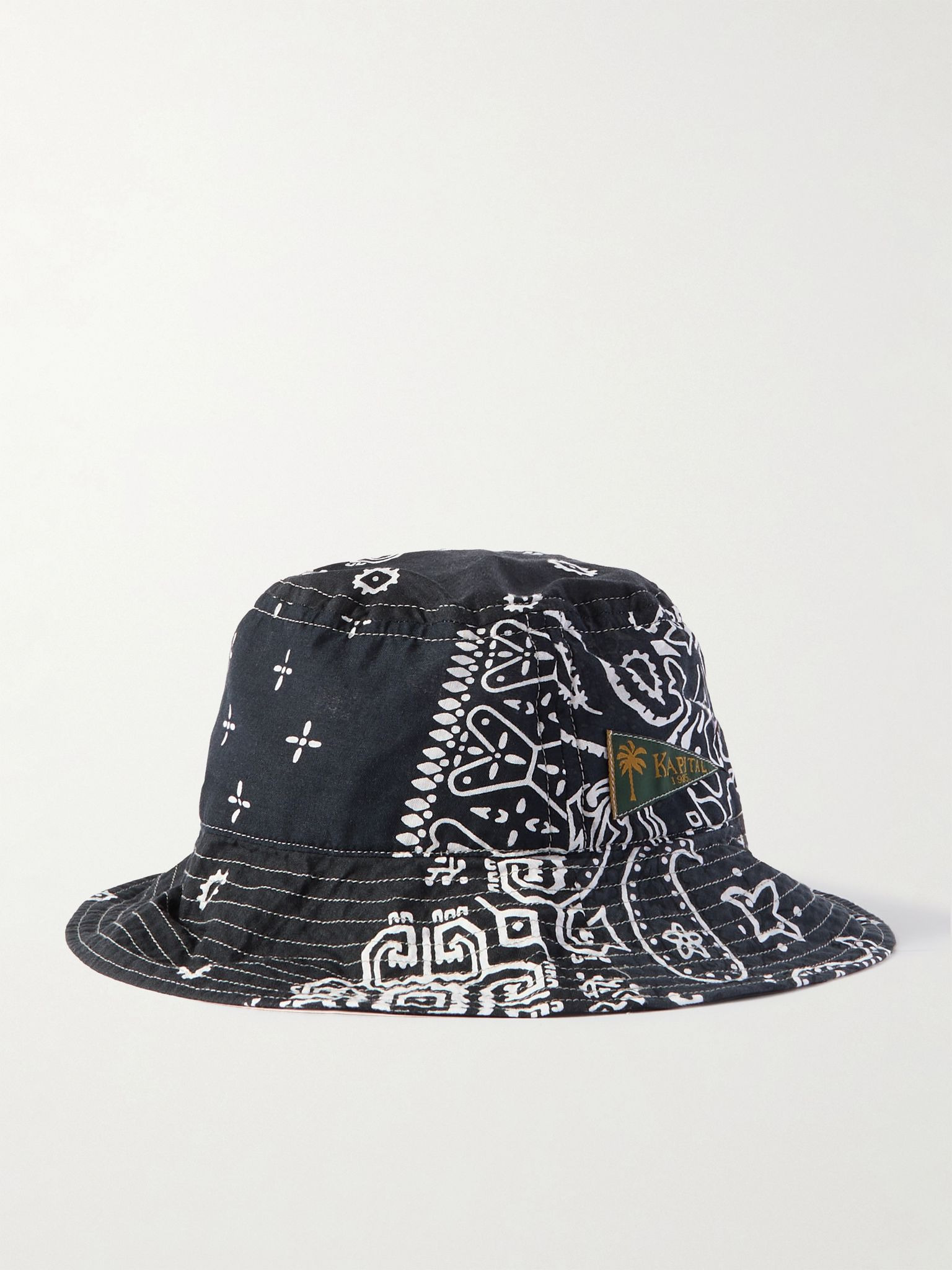 Bucket hats have made a recent comeback, and now we wonder how we ever did without them. This patchwork version from KAPITAL has been made in Japan from lightweight cotton and printed with a bandana-inspired pattern. The brand’s logo is appliqued on the side. Details & Care - Black and white cotton - 100% cotton; lining: 100% nylon - Machine wash