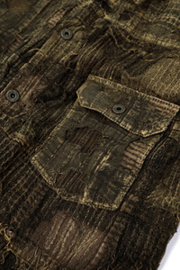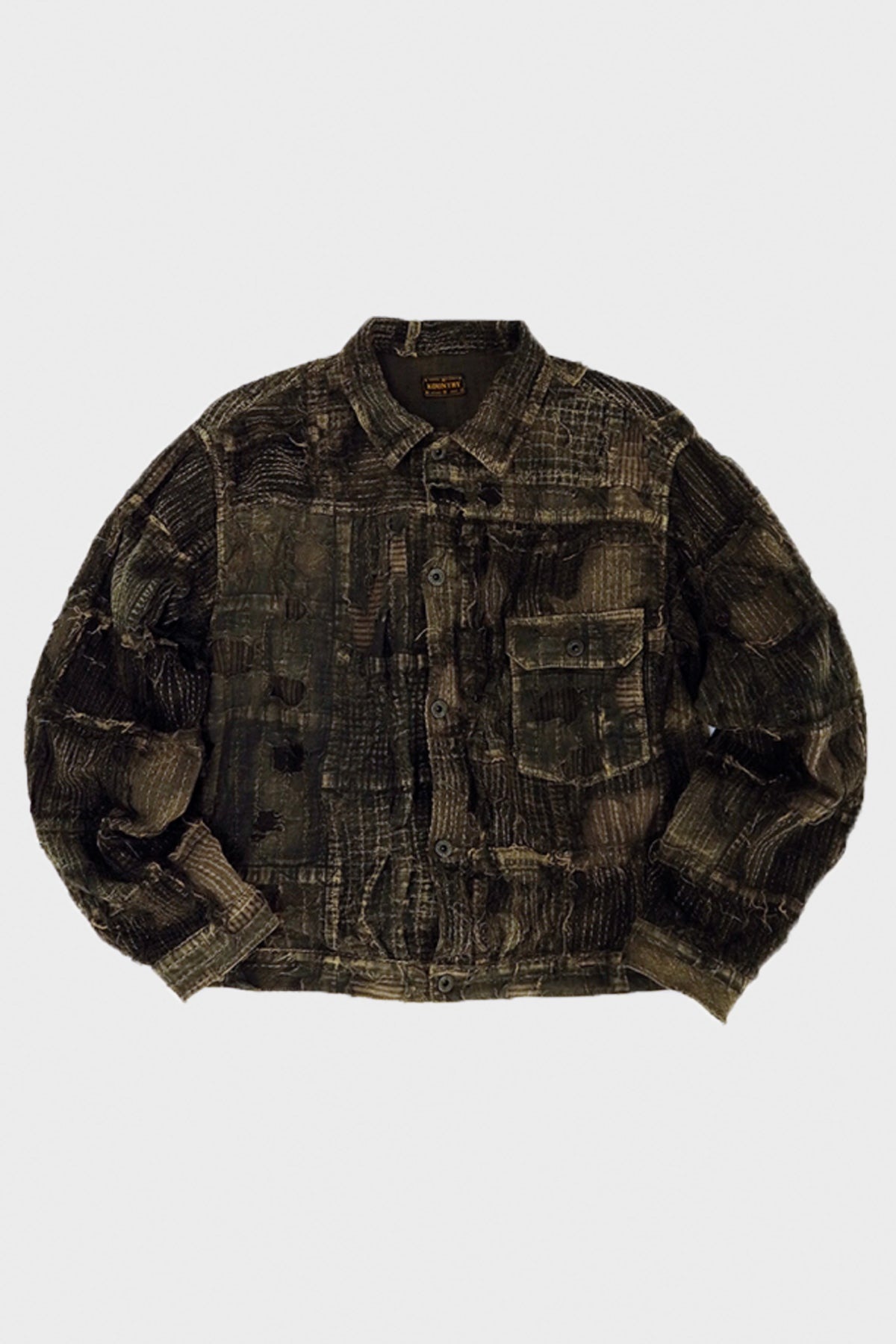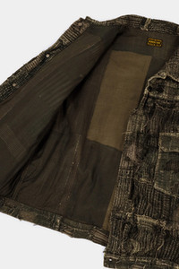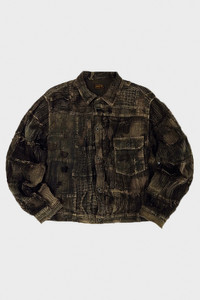 Introducing the BLACK TEA-CORE BORO SPRING 1ST JKT - the ultimate blend of style and history. Made with Kapital's original `BORO' fabric, which replicates the unique texture of rags. The faded black color, resembling leather, is achieved through Kapital's exclusive black yarn-dyed yarn and aging process. The cupro lining features a lintel print, adding a touch of sophistication. Upgrade your wardrobe with this timeless and one-of-a-kind jacket. - 90% Cotton 10% Linen - Boro Fabric Throughout - Sashiko Stitching - Type One Silhouette - Back Cinch - Single Chest Pocket - Every Piece is Unique - Handmade - Fits True to Size - Made in Japan