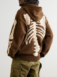 KAPITAL's wool hoodie is patterned with the brand's skeleton motif along the back and sleeves. It's designed with thumbhole cuffs, so they stay in place when layering and keep your hands warm. Size & Fit - Size 1 = XS, 2 = S, 3 = M, 4 = L, 5 = XL and 6 = XXL - Model wears a size larger to achieve a looser fit - Extended cuffs with thumbholes - Weighted knit - Model is shown wearing a 3 - Model measures: chest 36"/ 92cm, height 6'0"/ 183cm Details & Care - Brown and beige melange wool - 100% wool - Dry clean