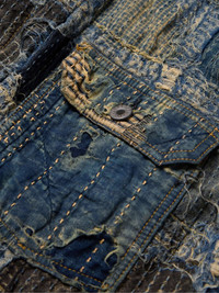 KAPITAL's jacket is made using the age-old boro technique, a kind of patchwork developed in 19th century Japan. It features scraps of cotton and linen-blend cloth held together by sashiko topstitching and has a boxy cut inspired by American trucker jackets. Lean into the DIY look and wear it with carpenter trousers and boots. Size & Fit - Size 1 = XS, 2 = S, 3 = M, 4 = L, 5 = XL and 6 = XXL - Fits true to size. Take your normal size - Designed for a regular fit - Mid-weight, non-stretchy fabric - Model is shown wearing a 3 - Model measures: chest 38"/ 96cm, height 6'2"/ 188cm Details & Care - Tonal-blue and beige cotton and linen-blend - Button fastenings - 90% cotton, 10% linen; lining: 56% cupro, 44% cotton; sleeve lining: 100% acetate - Hand wash