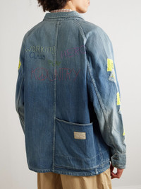 KAPITAL is based in Okayama Prefecture – otherwise known as the denim capital of Japan – so it's not surprising that it produces some of the best around. Modelled on workwear styles, this 'Cactus' jacket is made from 12oz denim that's faded for a lived-in finish. The sleeves are decorated with patches featuring floral appliques and the brand's 'Peckish Amigo' mascot. Size & Fit - Size 1 = XS, 2 = S, 3 = M, 4 = L, 5 = XL and 6 = XXL - Model wears a size larger to achieve a looser fit - Mid-weight, non-stretchy denim - Model is shown wearing a 4 - Model measures: chest 38"/ 96cm, height 6'2"/ 188cm Details & Care - Blue denim - Button fastenings - 100% cotton - Dry clean
