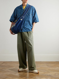 KAPITAL's shirt has been woven on a dobby loom to give the fabric a ditsy pattern. Cut for a relaxed fit, it's been made in Japan from indigo-dyed cotton and has a wide, dagger-style camp collar that adds to the Western feel. Size & Fit - Size 1 = XS, 2 = S, 3 = M, 4 = L, 5 = XL and 6 = XXL - Fits true to size. Take your normal size - Designed for a relaxed cut - Lightweight, non-stretchy fabric - Model is shown wearing a 3 - Model measures: chest 38"/ 96cm, height 6'3"/ 191cm Details & Care - Indigo and yellow cotton-dobby - Snap fastenings - 100% cotton - Machine wash