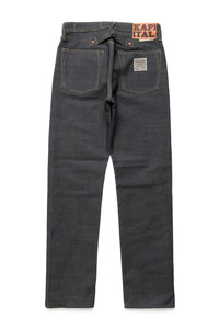• Kapital No. KAP-71ACentury Denim 5P Cisco Jeans - Color: No.7-S / Sumi (Charcoal) x Indigo - Fabric: Sumi Dyed Denim With Indigo Sashiko - 100% Cotton - Mid Rise Regular Straight Fit - Cinched Back - Button Fly - Unwashed Sanforized Denim, 3% Shrinkage - Made In Japan - Model is 5'11" wearing size 30 • Kapital No. KAP-71ACentury Denim 5P Cisco Jeans Measurements of Actual Garment in Inches: