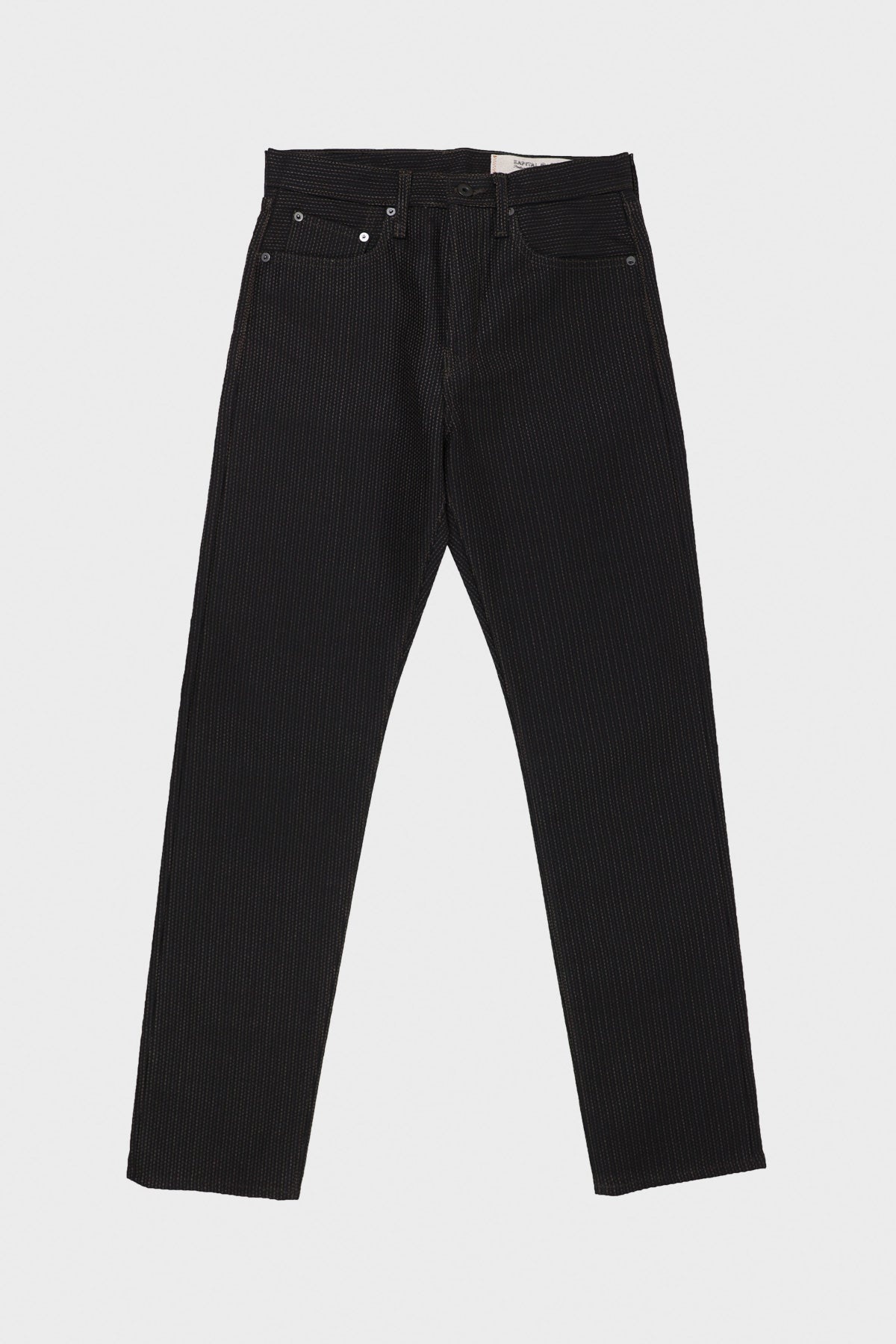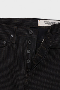 Made from a unique blend of Yeddo Hawthorn Linen and Naturally Mud Dyed thread. This is a mix of American indigo, Japanese Indigo, and Natural Indigo. The sashiko stitching adds a really interesting texture. Bottom line, if you are an indigo fanatic, there is no other denim for you. Made with a great fit that has a slightly higher rise with a taper throughout the entirety of the leg. Fit true to size for the proper fit. - Made from Sashiko Denim - Yeddo Hawthorne Dye - Mud Dye - Donut Buttons - Cinch Back - Slim Fit with High Rise