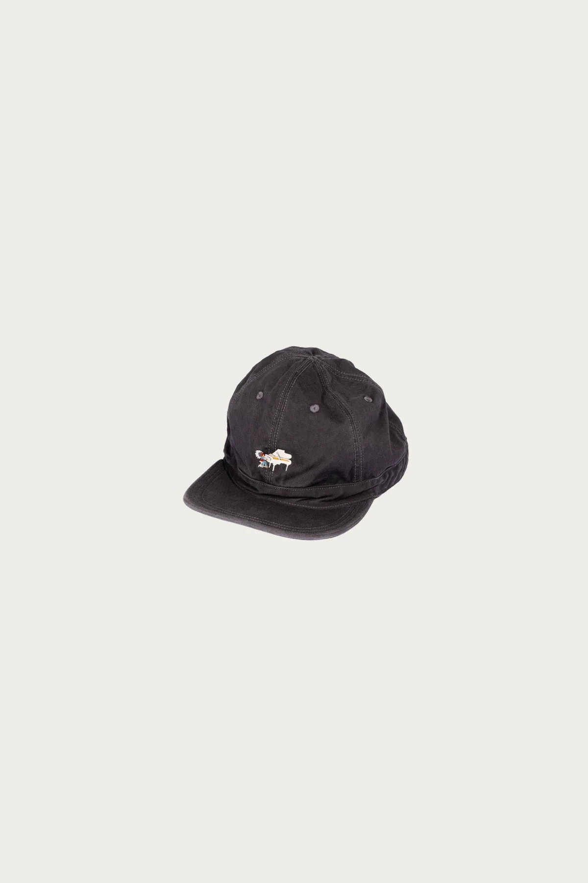 Kapital’s Brimfeild Cap takes a laid back silhouette and adds their unmistakable sense of character. Made from a soft and weathered chino cloth, the crown has an easy slouch that feels perfectly worn from day one. A tonal black brim brings a vintage ball cap energy, while a small embroidered graphic at the front adds that playful Kapital touch. The fit is relaxed and unstructured with an adjustable back strap so it wears comfortably through long days outside or casual weekends. A simple piece elevated with personality. - Cotton chino cloth crown - Tonal black brim - Embroidered front graphic - Unstructured fit - Adjustable strap - Made in Japan - Black/Black